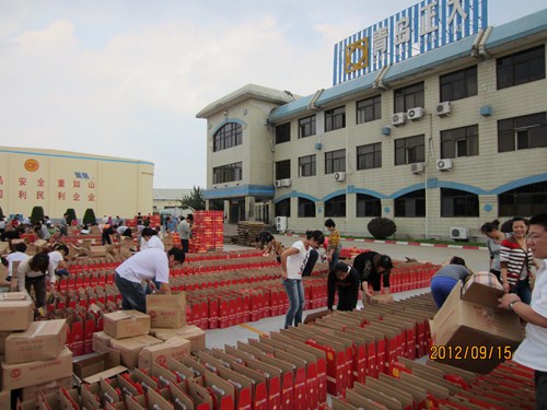 2012年9月15日青島正大院內(nèi)喜氣洋洋,一片忙忙碌碌的紅火景象, 隨著仲秋銷售旺季的來臨,公司仲秋禮盒供不應(yīng)求,在公司統(tǒng)一安排下,各部門積極投入到包禮盒的隊伍中來,經(jīng)過4個多小時齊心協(xié)力的奮戰(zhàn),共包裝8000箱禮盒。